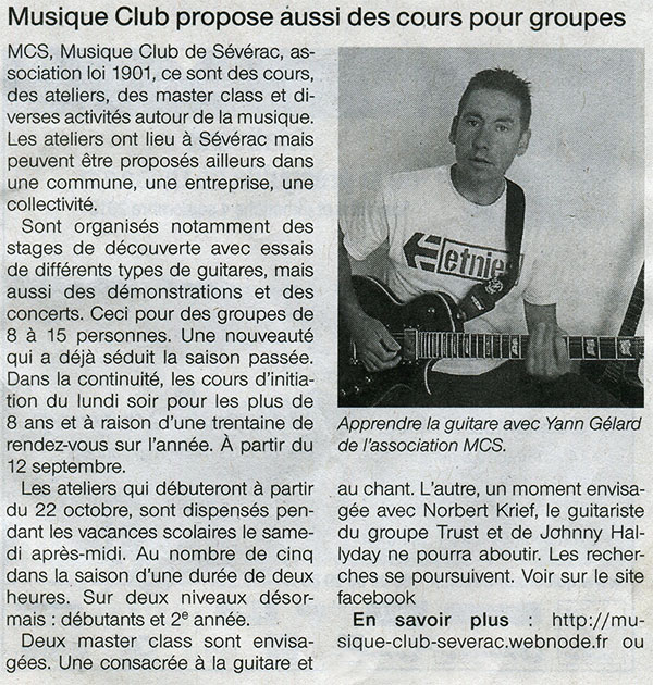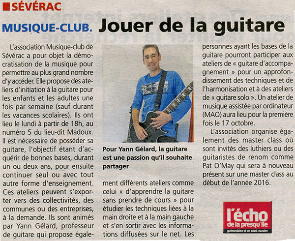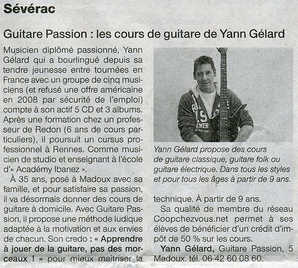 Yann GELARD professeur de guitare vous proposes également des :
